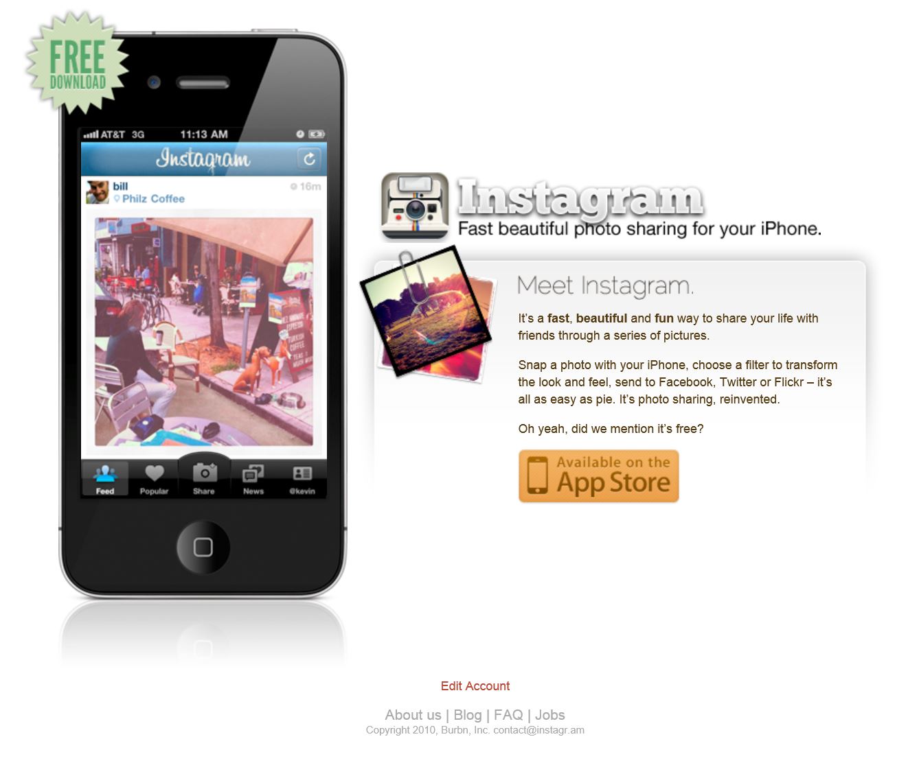 However by late 2011 the domain name Instagram.com has a live website redirecting you to download the Instagram App.