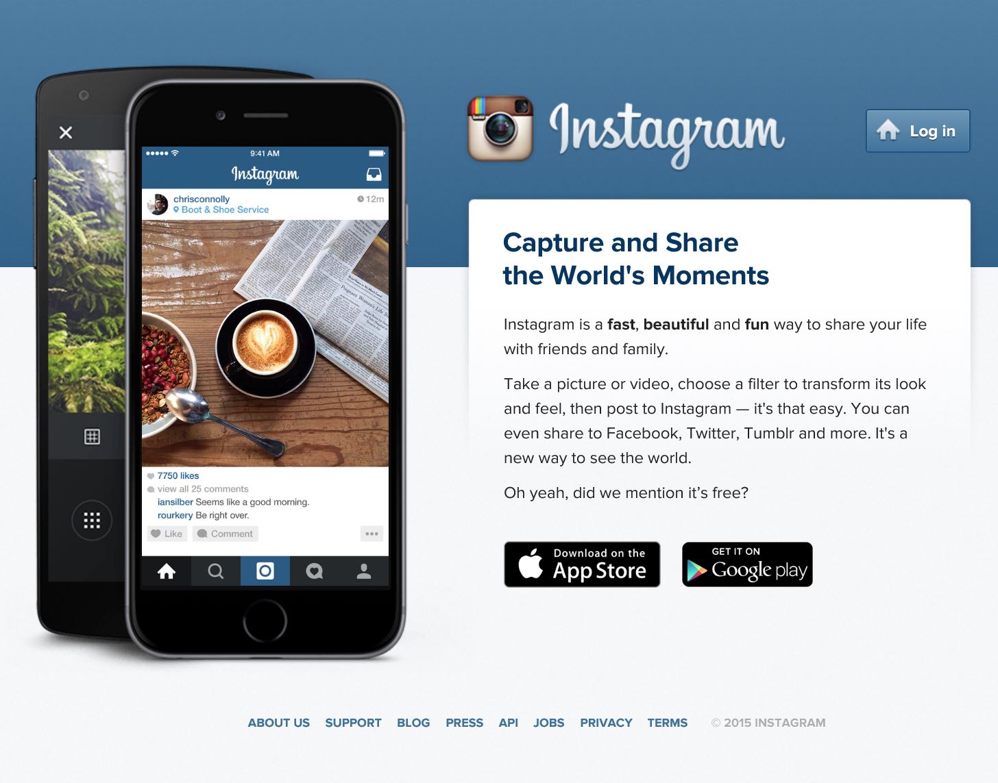 Instagram.com in 2015 again looks very similar except the handsets have been updated.