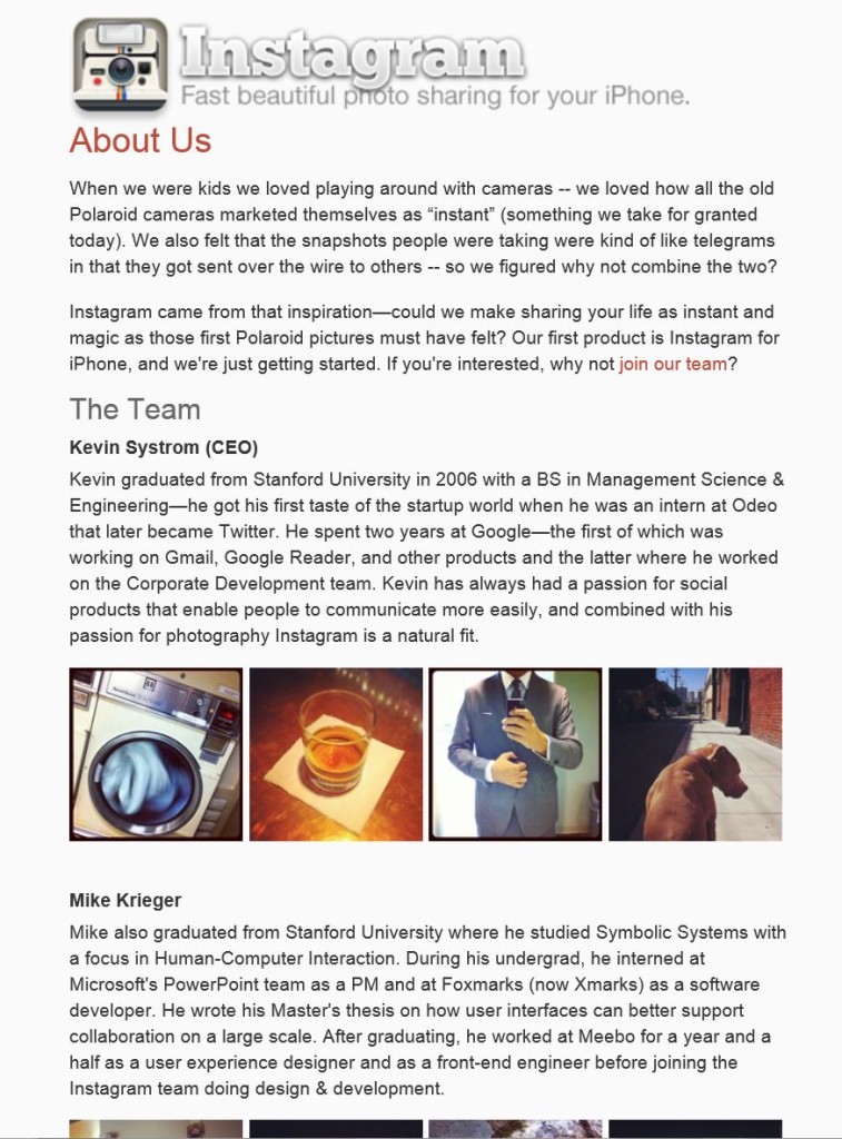 You can see the About Us on Instagram.com in 2011 before Facebook acquired the company in 2012, also at this time the company was using the domain name Instagr.AM and Instagram.com domain .