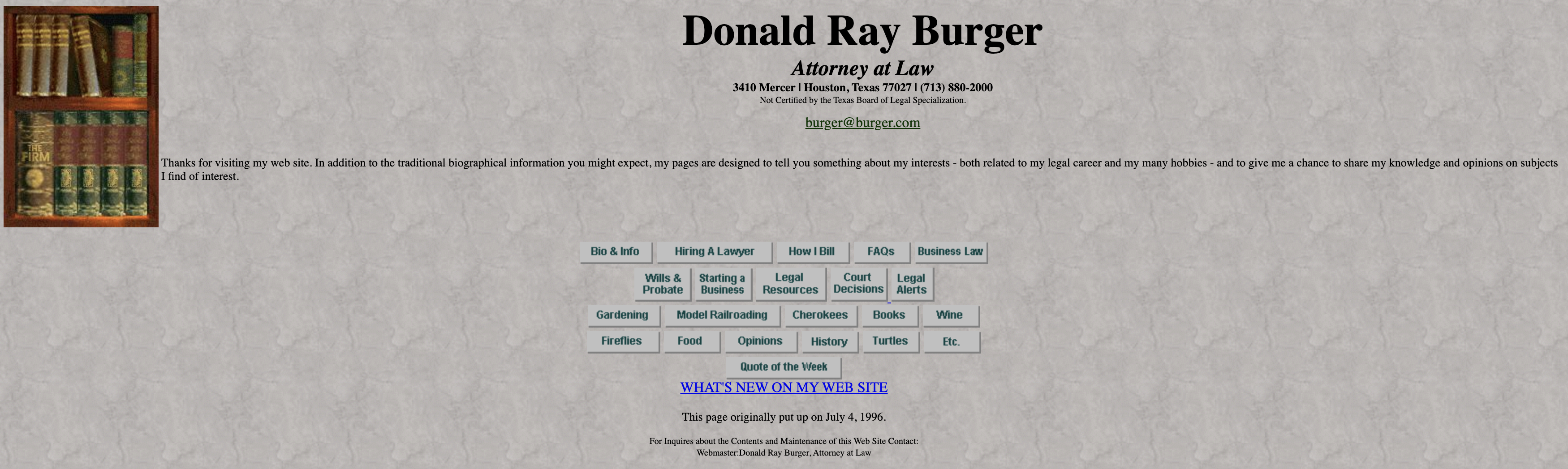 The website on Burger.com is dated, it even states it was designed back in 1996, however, Donald Burger does update content on the site which you can see at this link here where he blogs on Burger.com